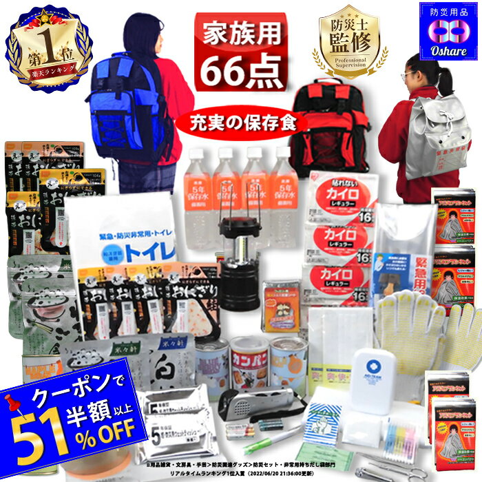 ・・・この商品の「い ち お し」ポイント・・・ ●もしもの時、すごく役立つ 防災グッズ を"被災者の声"より厳選し、セットした 防災セット 66点 家族 用です。