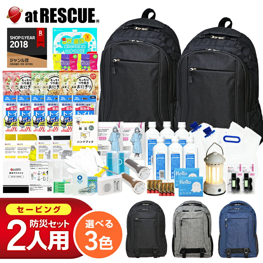 ≪2人用 防災セット セービング≫ リュックサック×2個 カラー:ブラック、グレー、ネイビー容量:約23Lサイズ:約43×30×18cmご選択いただいたカラーのリュックを2つお届けします。
