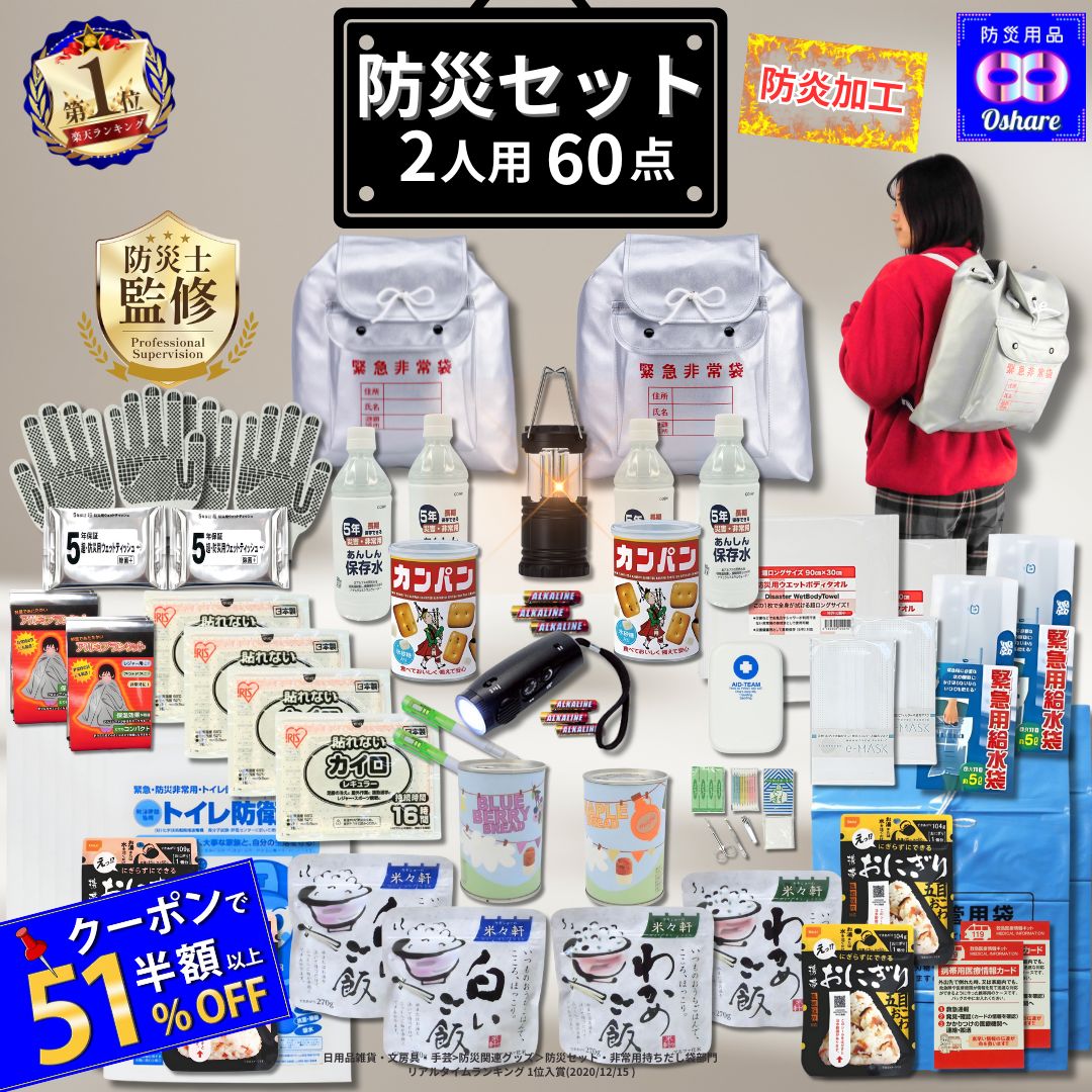 いざという時のための 防災グッズ が60点セットされています。