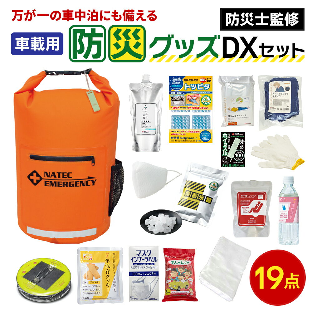 【ふるさと納税】防災士監修 防災グッズ 車載用 DX セット 19点 防水 多機能リュック 10L 携帯トイレ 清潔用品 エアマット 保存水 クッキー マスク 非常用持ち出し袋 防災 防災リュック 防災用品 災害 非常用 避難 地震 災害 震災 ナテック 送料無料 愛知県 あま市 車での被災を想定した防災セット。