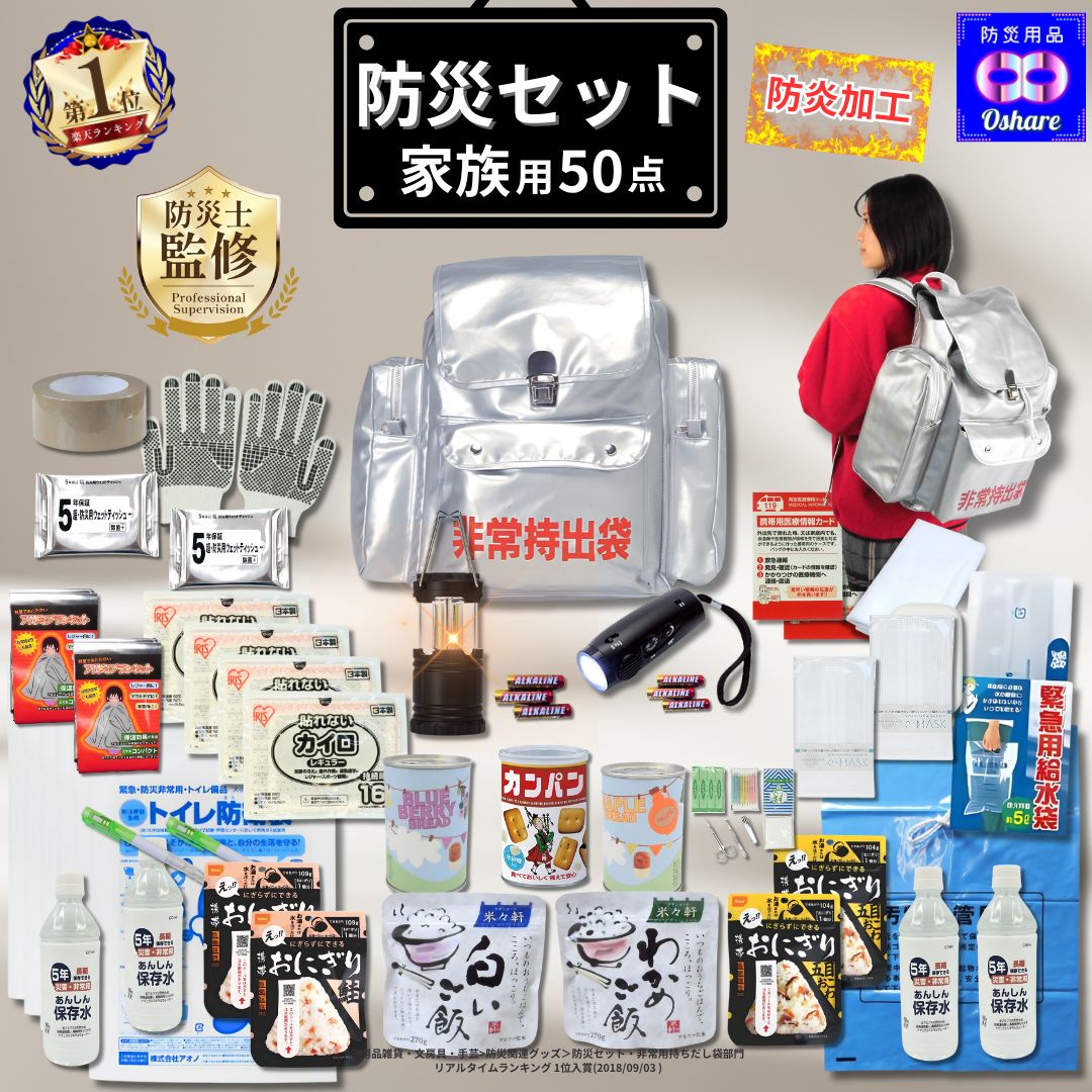いざという時のための 防災グッズ が50点セットされています。