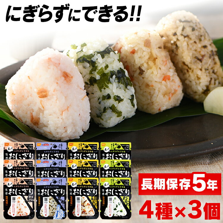 ●表示内容量 鮭・わかめ・昆布:約42g おこわ:約45g ●入数 鮭・わかめ・おこわ・昆布各3個 ●できあがり量 鮭・わかめ・昆布:約109g おこわ:約104g ●必要水量 鮭・わかめ・昆布:約67ml おこわ:約59ml ●原材料 / 調味料(アミノ酸等)、甘味料(ソルビトール、甘草)、カラメル色素、増粘多糖類 ●賞味期限 製造より5年 ●保存方法 直射日光、高温多湿を避けて、常温で保存してください。