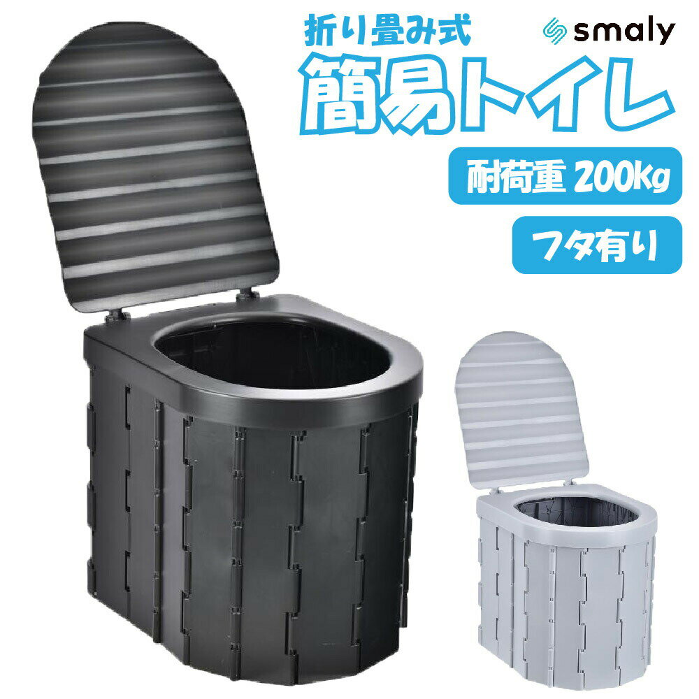 組立て簡単!どこでも使える簡易トイレ!コンパクトな形状で車内など狭い場所にも設置可能!踏み台としても使える耐荷重約200kg!厚さ約7cmに折り畳める!グレーとブラックの2カラー