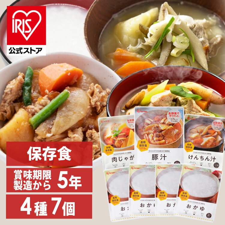 [けんちん汁]●内容量250g×1袋●原材料名野菜(大根、人参、じゃが芋、ごぼう、椎茸)、醤油(小麦・大豆を含む)、車麩、油あげ、植物油脂、砂糖・ぶどう糖果糖液糖、かつお節エキス、肉エキス(鶏肉・豚肉を含む)、食塩/調味料(アミノ酸等)、酸化防止剤(ビタミンC)●栄養成分表示(1食250gあたり)エネルギー:108kcalたんぱく質:3.2g脂質:5.1g炭水化物:13.1g食塩相当量:2.7g[豚汁]●内容量250g×1袋●原材料名野菜(人参、大根、玉ねぎ、ごぼう、じゃが芋)、味噌(大豆を含む)、豚肉、こんにゃく、みりん、かつお節エキス(小麦を含む)、肉エキス、砂糖・ぶどう糖果糖液糖/調味料(アミノ酸等)、酸化防止剤(ビタミンC)●栄養成分表示(1食250gあたり)エネルギー:155kcalたんぱく質:6.0g脂質:8.1g炭水化物:13.6g食塩相当量:2.4g[肉じゃが]●内容量220g×1袋野菜(じゃが芋、人参、玉ねぎ)、こんにゃく、豚肉、醤油(小麦・大豆を含む)、砂糖・ぶどう糖果糖液糖、みりん、清酒、かつお節エキス、食塩/調味料(アミノ酸等)、pH調整剤、酸化防止剤(ビタミンC)●栄養成分表示(1食220gあたり)エネルギー:219kcalたんぱく質:6.0g脂質:9.0g炭水化物:27.7g食塩相当量:2.5g[おかゆ]●内容量250g×4袋米(新潟県産)/酸化防止剤(ビタミンC)●栄養成分表示(1食250gあたり)エネルギー:87kcalたんぱく質:1.5g脂質:0.2g炭水化物:18.8g食塩相当量:0.0g※この標準値は、目安です。