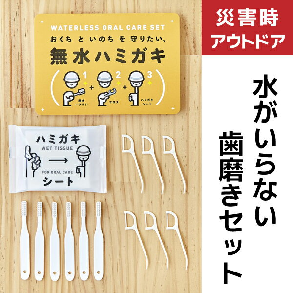おくち と いのち を 守りたい、無水ハミガキ お口の防災 無水ハミガキセットの詳細 ■セット内容 無水ハブラシ:6本 ■フロス:6本 YEハミガキシート(口腔化粧品):1袋(10枚入) お口の防災リーフレット:1冊 ■材質・成分 【歯ブラシ】 毛:ナイロン 柄:ポリプロピレン 毛の固さ:ふつう 耐熱温度:80℃ 【フロス】 糸:ポリエステル 柄:ABS 【YEハミガキシート(口腔化粧品)】 成分:水(基剤)、PG・PEG-60水添ヒマシ油(溶剤)、キシリトール(甘味剤)、グリセリン・ベタイン・ヒアルロン酸Na(保湿剤)、 グリチルリチン酸2K(甘味剤)、クエン酸・クエン酸Na(pH調整剤)、サッカリンNa(甘味剤)、メチルパラベン、エチルパラベン、 ブチルパラベン、セチルピリジニウムクロリド、安息香酸Na、フェノキシエタノール(保存剤)/製造販売元:株式会社ディプロ ■使用期限 ハミガキシートのみ製造から5年間 ■使用上の注意 ・1日2回を目安に使用してください。